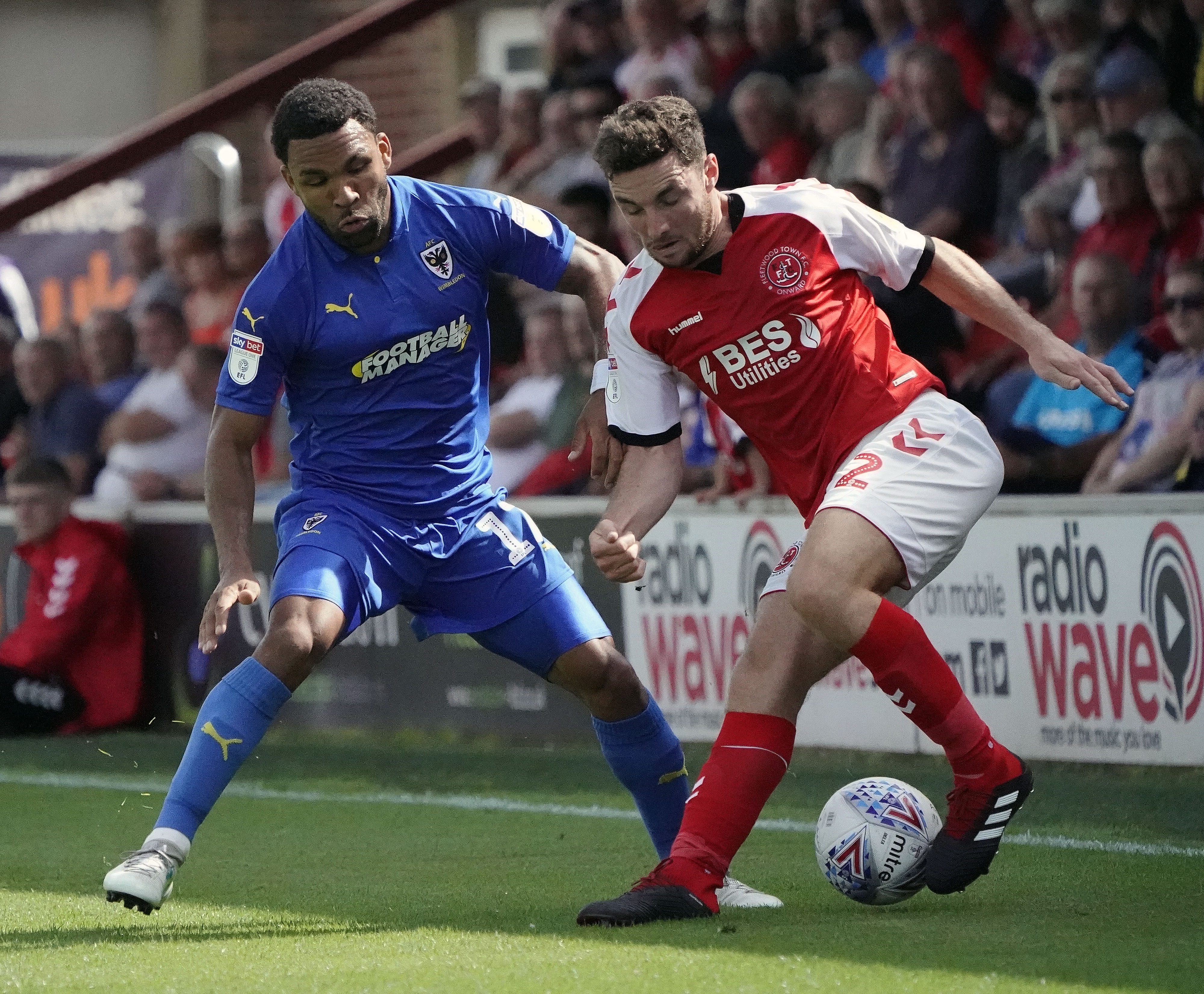 Andy barcham and Lewie Coyle Published August 4, 2018 at 4000 × 3303 in Fleetwood v AFC Wimbledon 4 Aug 2018