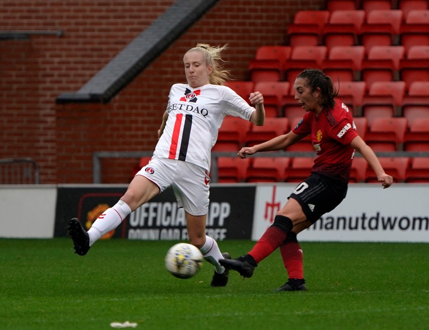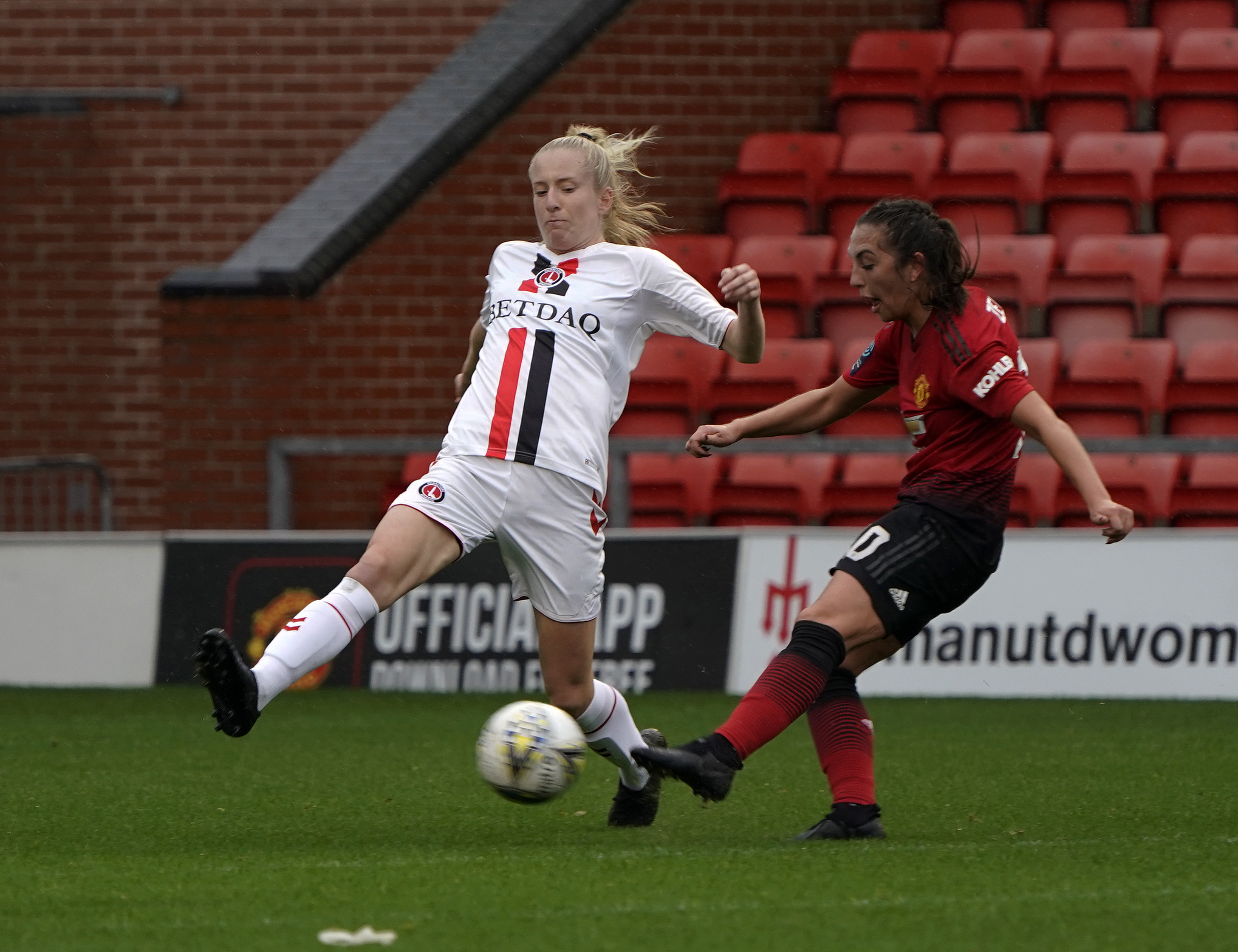 Ritchie trys to block Utds first goal Published October 15, 2018 at 2914 × 2241 in Man Utd Ladies v Charlton 14 Oct 2018