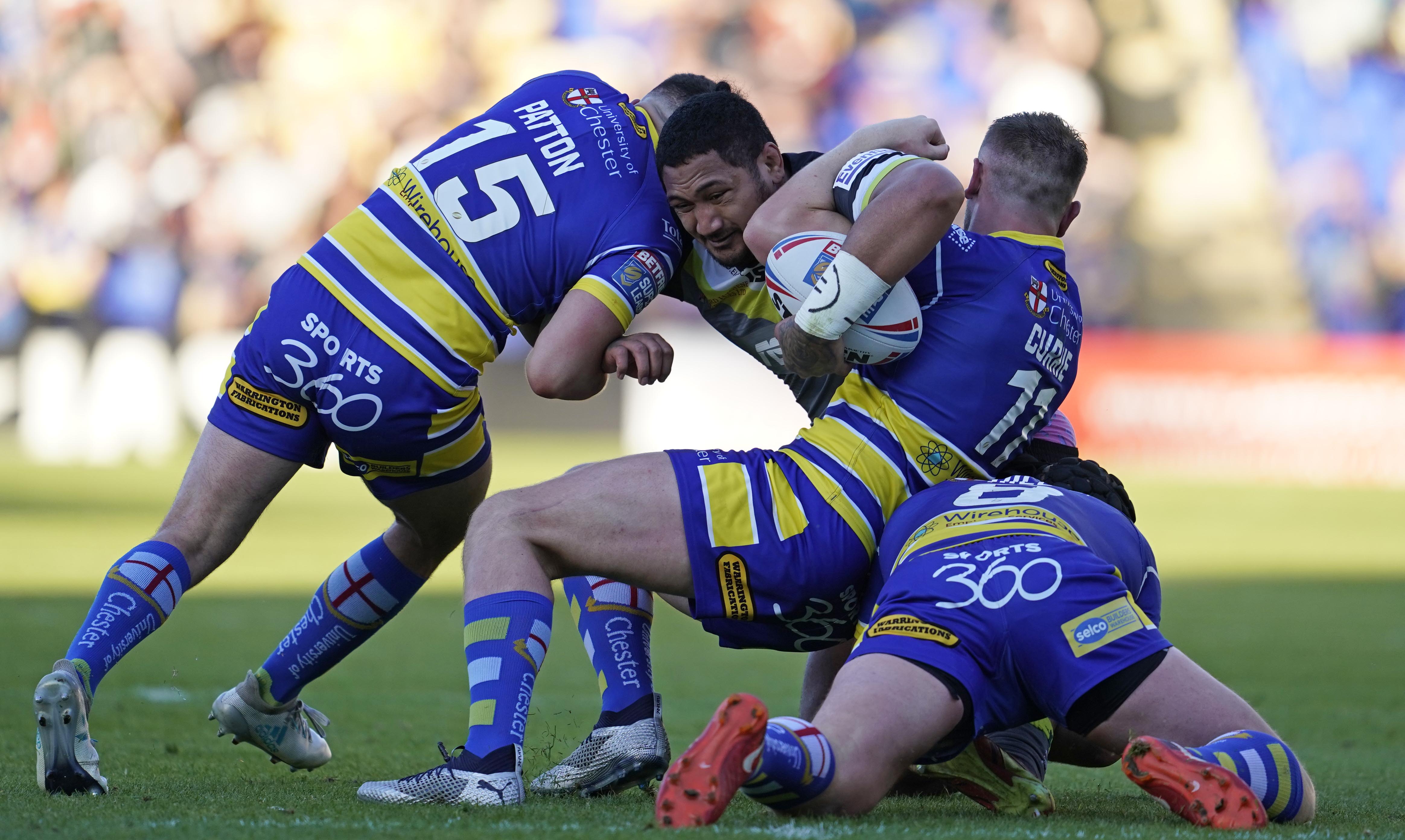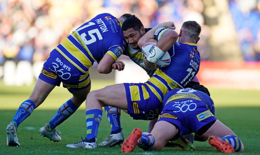 Currie Pattern and Hill tackle Published June 21, 2019 at 4656 × 2784 in Warrington v Wakefield 21 June 2019
